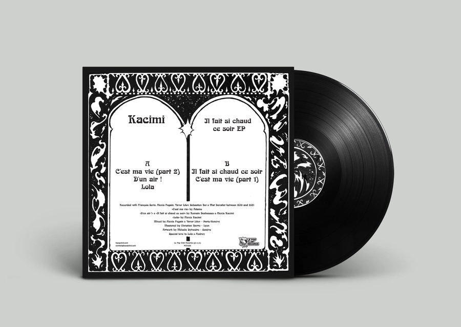 This 5-track EP is propelled by an old obsession of Kacimi : the song « C’est ma vie » by Adamo, declined in 2 covers. One opens this opus in an electronica version (played by Sebastien Bui and Yavor Lilov from the Swiss band l’Eclair) and the second closes it through the melody of a piano and its few strands of pedal steel by Mat Davallet, recalling the folk sirens of his previous album « Gyrophare ».